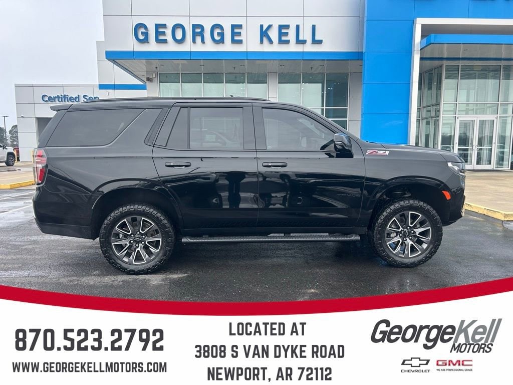 Odometer is 12502 miles below market average! George Kell Motors is proud to present you with another True Market Priced Pre-Owned Vehicle. This 2022 Chevrolet Tahoe Z71 is loaded with the following Factory Options:Driver Alert Package (Lane Change Alert w/Side Blind Zone Alert and Rear Cross Traffic Alert), Luxury Package (2nd Row Pwr Release 60/40 Split-Folding Bench Seat, 3rd Row 60/40 Power-Folding Split-Bench Seat, HD Surround Vision, Heated 2nd Row Outboard Seats, Heated Steering Wheel, Memory Settings, Outside Heated Power-Adjustable Mirrors, Power Tilt & Telescopic Steering Column, and Rear Pedestrian Alert), Preferred Equipment Group 2Z7 (1st & 2nd Row Color-Keyed Carpeted Floor Mats, 2-Speed Active Electronic AutoTrac Transfer Case, Auto-Dimming Inside Rear-View Mirror, Automatic Stop/Start, Black Tubular Assist Steps, Bose 9-Speaker Stereo Audio System Feature, Bright Front & Rear Door Sill Plates, Color-Keyed Carpeting Floor Covering, Driver & Front Outboard Passenger Airbags, Enhanced Driver Information Center, Floor Console w/Storage Area, Front High-Approach Angle Fascia, Hands-Free Rear Power Programmable Liftgate, Hill Descent Control, Infotainment Display, Leather-Wrapped Steering Wheel, LED Daytime Running Lamps, Memory Settings for Driver, Red Horizontal-Mounted Recovery Hooks, Remote Start, SiriusXM Radio w/360L, Start/Stop System Disable Button, Universal Home Remote, and Wireless Charging), 4WD, Black Leather, 10-Way Power Driver & Passenger Seat Adjusters, 3.23 Rear Axle Ratio, 3rd row seats: split-bench, 4-Wheel Disc Brakes, 9 Speakers, ABS brakes, Air Conditioning, Alloy wheels, AM/FM radio: SiriusXM with 360L, Apple CarPlay/Android Auto, Auto High-beam Headlights, Auto-dimming Rear-View mirror, Automatic temperature control, Brake assist, Bumpers: body-color, Compass, Delay-off headlights, Driver door bin, Driver vanity mirror, Dual front impact airbags, Dual front side impact airbags, Dual-Pane Power Panoramic Sunroof, Electronic Stability Control, Emergency communication system: OnStar and Chevrolet connected services capable, Four wheel independent suspension, Front anti-roll bar, Front Bucket Seats, Front Center Armrest, Front dual zone A/C, Front High-Back Reclining Bucket Seats, Front reading lights, Fully automatic headlights, Garage door transmitter, Heated door mirrors, Heated Driver & Front Passenger Seats, Heated front seats, Illuminated entry, Leather steering wheel, Leather-Appointed Seat Trim, Low tire pressure warning, Memory seat, Navigation System, Not Equipped w/Front & Rear Park Assist, Not Equipped w/Steering Column Lock, Occupant sensing airbag, Outside temperature display, Overhead airbag, Overhead console, Panic alarm, Passenger door bin, Passenger vanity mirror, Power door mirrors, Power driver seat, Power Liftgate, Power passenger seat, Power Release 2nd Row Bucket Seats, Power steering, Power windows, Premium audio system: Chevrolet Infotainment System 3, Premium Smooth Ride Suspension, Radio: Chevrolet Infotainment 3 Premium System, Rain sensing wipers, Rear air conditioning, Rear anti-roll bar, Rear reading lights, Rear seat center armrest, Rear window defroster, Rear window wiper, Remote keyless entry, Roof rack: rails only, Security system, Speed control, Speed-sensing steering, Split folding rear seat, Spoiler, Steering wheel mounted audio controls, Tachometer, Telescoping steering wheel, Tilt steering wheel, Traction control, Trip computer, Variably intermittent wipers, Voltmeter, and Wheels: 20 x 9 Machined Aluminum.
