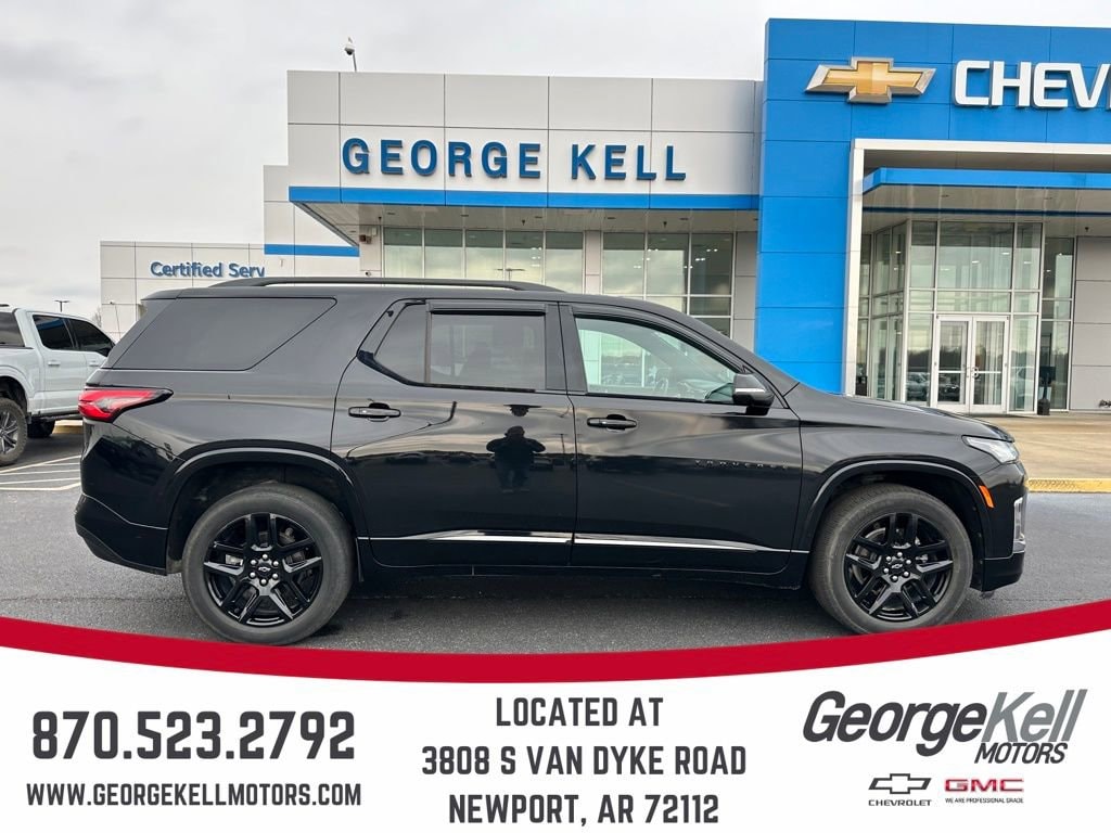 Odometer is 23283 miles below market average! George Kell Motors is proud to present you with another True Market Priced Pre-Owned Vehicle. This 2022 Chevrolet Traverse Premier is loaded with the following Factory Options:Front License Plate Bracket Mounting Package, Preferred Equipment Group 1LZ (Heated 2nd Row Outboard Position Seats, Heated Driver & Front Passenger Seats, Heated Steering Wheel, Rear Park Assist w/Audible Warning, and Ventilated Driver & Front Passenger Seats), Redline Edition (Black Door Handles, Black Roof Rails, Dual SkyScape 2-Panel Power Sunroof, Ornamentation, Redline Accent Decals (LPO), and Wheels: 20 Gloss Black Painted Alum w/Red Stripes), Trailering Equipment (Heavy-Duty Cooling System, Hitch Guidance w/Hitch View, and Trailering Assist Guidelines), 10 Speakers, 3.49 Axle Ratio, 3rd row seats: split-bench, 4-Wheel Disc Brakes, 6-Way Power Front Passenger Seat, 8-Way Power Driver Seat Adjuster, ABS brakes, Air Conditioning, Alloy wheels, AM/FM radio: SiriusXM with 360L, Apple CarPlay/Android Auto, Auto High-beam Headlights, Auto-dimming door mirrors, Auto-dimming Rear-View mirror, Automatic temperature control, Bose Premium 10-Speaker Audio System Feature, Brake assist, Bumpers: body-color, Compass, Delay-off headlights, Driver door bin, Driver vanity mirror, Dual front impact airbags, Dual front side impact airbags, Electronic Stability Control, Emergency communication system: OnStar Guidance, Four wheel independent suspension, Front anti-roll bar, Front Bucket Seats, Front Center Armrest, Front dual zone A/C, Front Passenger 2-Way Power Lumbar, Front reading lights, Fully automatic headlights, Garage door transmitter, Heated door mirrors, Heated front seats, Heated rear seats, Heated steering wheel, Illuminated entry, Leather steering wheel, Low tire pressure warning, Memory seat, Navigation System, Not Equipped w/Heated Steering Wheel, Not Equipped w/Rear Park Assist, Occupant sensing airbag, Outside temperature display, Overhead airbag, Overhead console, Panic alarm, Passenger door bin, Passenger vanity mirror, Perforated Leather-Appointed Seat Trim, Power door mirrors, Power Driver Lumbar Control, Power driver seat, Power Liftgate, Power passenger seat, Power steering, Power windows, Premium audio system: Chevrolet Infotainment 3 Plus, Radio data system, Radio: Chevrolet Infotainment 3 Plus System w/Navi, Rear air conditioning, Rear anti-roll bar, Rear reading lights, Rear window defroster, Rear window wiper, Remote keyless entry, Roof rack: rails only, Security system, SiriusXM w/360L, Speed control, Speed-sensing steering, Spoiler, Steering wheel memory, Steering wheel mounted audio controls, Tachometer, Telescoping steering wheel, Tilt steering wheel, Traction control, Trip computer, Turn signal indicator mirrors, Variably intermittent wipers, Ventilated front seats, Voltmeter, and Wheels: 20 Metallic Machined-Face Aluminum.