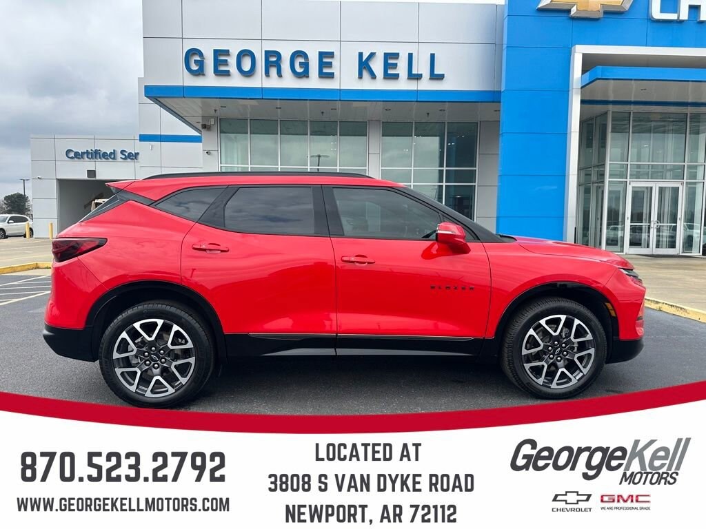 George Kell Motors is proud to present you with another True Market Priced Pre-Owned Vehicle. This 2024 Chevrolet Blazer RS is loaded with the following Factory Options:Cargo Package (LPO) (Retractable Cargo Shade and Vertical Cargo Net (LPO)), Enhanced Convenience Package (Heated Rear Outboard Seating Positions, Memory Settings For Driver Seat & Exterior Mirrors, Power Tilt & Telescoping Steering Column, and Ventilated Driver & Front Passenger Seats), Floor Liner Package (LPO) (1st & 2nd Row All-Weather Floor Liners (LPO) and Integrated Cargo Liner (LPO)), Preferred Equipment Group 1RS (Heated Steering Wheel), AWD, 3.49 Final Drive Axle Ratio, 4-Wheel Disc Brakes, 6-Way Power Front Passenger Seat Adjuster, 8 Speakers, 8-Way Power Driver Seat Adjuster, ABS brakes, Air Conditioning, Alloy wheels, AM/FM radio: SiriusXM with 360L, Apple CarPlay/Android Auto, Auto High-beam Headlights, Auto-dimming door mirrors, Auto-dimming Rear-View mirror, Automatic temperature control, Bose Premium 8-Speaker Audio System Feature, Brake assist, Bumpers: body-color, Child-Seat-Sensing Airbag, Compass, Delay-off headlights, Driver door bin, Driver vanity mirror, Dual front impact airbags, Dual front side impact airbags, Electronic Stability Control, Emergency communication system: OnStar and Chevrolet connected services capable, Four wheel independent suspension, Front anti-roll bar, Front Bucket Seats, Front Center Armrest, Front dual zone A/C, Front reading lights, Fully automatic headlights, Garage door transmitter, Heated door mirrors, Heated Driver & Front Passenger Seats, Heated front seats, Heated steering wheel, Illuminated entry, Knee airbag, Leather Shift Knob, Leather steering wheel, Low tire pressure warning, Navigation System, Occupant sensing airbag, Outside temperature display, Overhead airbag, Overhead console, Panic alarm, Passenger door bin, Passenger vanity mirror, Perforated Leather-Appointed Seat Trim, Power door mirrors, Power Driver Lumbar Control, Power driver seat, Power Liftgate, Power passenger seat, Power steering, Power windows, Premium audio system: Chevrolet Infotainment 3 Premium, Radio data system, Radio: Chevrolet Infotainment 3 Premium System, Rear anti-roll bar, Rear reading lights, Rear seat center armrest, Rear window defroster, Rear window wiper, Remote keyless entry, Ride & Handling Suspension, Security system, SiriusXM w/360L, Speed control, Speed-sensing steering, Split folding rear seat, Spoiler, Steering wheel mounted audio controls, Tachometer, Telescoping steering wheel, Tilt steering wheel, Traction control, Trip computer, Turn signal indicator mirrors, Variably intermittent wipers, Voltmeter, and Wheels: 20 Technical Gray Aluminum.
