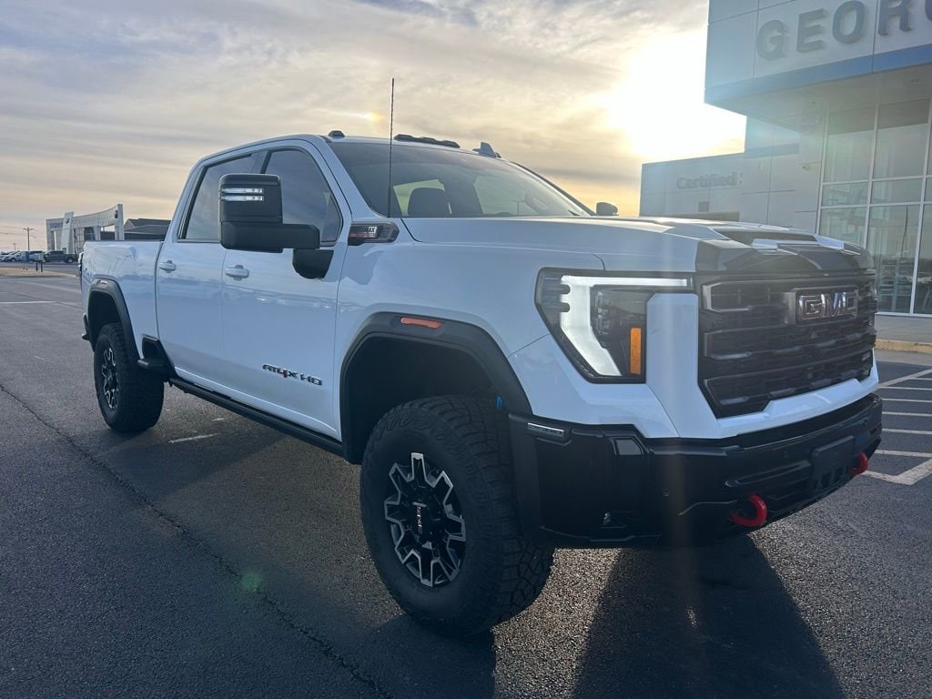 Recent Arrival! Odometer is 13743 miles below market average! George Kell Motors is proud to present you with another True Market Priced Pre-Owned Vehicle. This 2025 GMC Sierra 2500HD AT4X is loaded with the following Factory Options:Gooseneck/5th Wheel Prep Package, Preferred Equipment Group 4SG (120-Volt Bed Mounted Power Outlet, 120-Volt Instrument Panel Power Outlet, 2 Charge-Only Rear USB Ports, 2 Charge/Data USB Ports Inside Center Console, 2 USB Ports, 2-Speed Active Transfer Case, Bed View Camera w/2 Trailer Camera Provisions, Bose Premium Series 12-Speaker System, Deep-Tinted Glass, Electric Rear-Window Defogger, Floor-Mounted Center Console, Front Prem Floor Liners w/Removable Carpet Insert, Front Rain-Sensing Wipers, Gloss Black Header Grille & Grille Insert Bars, HD Surround Vision, Heated 2nd Row Outboard Seats, Heated Driver & Front Outboard Passenger Seats, Hill Descent Control, Inside Rearview Auto-Dimming Rear Camera Mirror, Keyless Open & Start, LED Cargo Area Lighting, LED Smoked Amber Roof Marker Lamps, Manual Tilt-Wheel/Telescoping Steering Column, Multicolor 15 Diagonal Head-Up Display, OnStar Services Capable, Power Front Passenger Windows w/Express Up/Down, Power Sliding Rear Window w/Defogger, Power Sunroof, Push Button Start, Rear Cross Traffic Alert, Rear Prem Floor Liners w/Removable Carpet Insert, Rear Wheelhouse Liners, Remote Vehicle Starter System, Safety Alert Seat, SiriusXM w/360L Trial Subscription, Spray-On Pickup Bedliner w/GMC Logo, Steering Wheel Audio Controls, Trailer Cam Provisions & Trailer Viewing Software, Trailer Side Blind Zone Alert, Trailer Tire Pressure Monitor Sensors, Ultrasonic Front & Rear Park Assist, Unauthorized Entry Theft-Deterrent System, Universal Home Remote, Ventilated Driver & Front Passenger Seats, Wireless Charging, and Wireless Phone Projection), Snow Plow Prep/Camper Package (220-Amp Alternator), 10-Speed Automatic, 4WD, Obsidian Rush Leather, 12 Speakers, 16-Way Power Driver Seat Adjuster w/Lumbar, 16-Way Power Passenger Seat Adjuster w/Lumbar, 3 Years SiriusXM, 4-Wheel Disc Brakes, ABS brakes, Air Conditioning, Alloy wheels, AM/FM radio: SiriusXM with 360L, Apple CarPlay/Android Auto, Auto High-beam Headlights, Auto-dimming door mirrors, Auto-dimming Rear-View mirror, Automatic Emergency Braking, Automatic temperature control, Brake assist, Buckle to Drive, Compass, Delay-off headlights, Driver door bin, Driver Memory, Driver vanity mirror, Dual front impact airbags, Dual front side impact airbags, Electronic Stability Control, Emergency communication system: OnStar, Engine Block Heater, Exhaust Brake, Following Distance Indicator, Forward Collision Alert, Front anti-roll bar, Front Bucket Seats, Front Center Armrest, Front dual zone A/C, Front fog lights, Front License Plate Kit, Front Pedestrian Braking, Front reading lights, Front wheel independent suspension, Full Grain Leather Seat Trim, Fully automatic headlights, Garage door transmitter, Gloss Black Door Handles, Heads-Up Display, Heated door mirrors, Heated front seats, Heated rear seats, Heated steering wheel, Heavy-Duty 80 Amp Battery, Hitch Guidance w/Hitch View, Illuminated entry, In-Vehicle Trailering System App, IntelliBeam Automatic High Beam On/Off, Lane Departure Warning System, Leather steering wheel, Low tire pressure warning, Memory seat, Occupant sensing airbag, Off-Road Suspension, Outside temperature display, Overhead airbag, Overhead console, Panic alarm, Passenger door bin, Passenger vanity mirror, Pickup Box, Power door mirrors, Power driver seat, Power moonroof, Power passenger seat, Power steering, Power windows, Radio: AM/FM w/Premium GMC Infotainment System, Rain sensing wipers, Rear reading lights, Rear seat center armrest, Rear step bumper, Rear window defroster, Remote keyless entry, Security system, Speed control, Speed-sensing steering, Split folding rear seat, Steering wheel mounted audio controls, Tachometer, Telescoping steering wheel, Tilt steering wheel, Traction cont