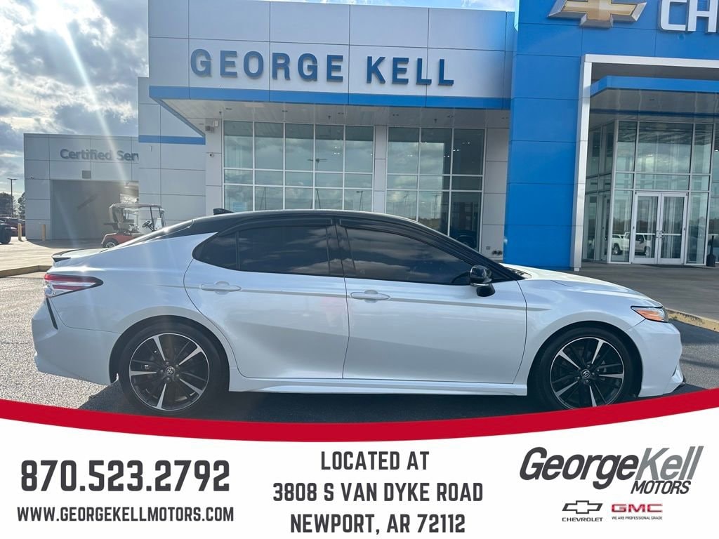 George Kell Motors is proud to present you with another True Market Priced Pre-Owned Vehicle. This 2020 Toyota Camry XSE V6 is loaded with the following Factory Options:Red Leather, 4-Wheel Disc Brakes, 9 Speakers, ABS brakes, Air Conditioning, Alloy wheels, AM/FM radio: SiriusXM, Apple CarPlay/Android Auto, Auto High-beam Headlights, Auto-dimming Rear-View mirror, Automatic temperature control, Brake assist, Bumpers: body-color, CD player, Compass, Delay-off headlights, Driver door bin, Driver vanity mirror, Dual front impact airbags, Dual front side impact airbags, Electronic Stability Control, Emergency communication system: Safety Connect with 1-year trial, Exterior Parking Camera Rear, Four wheel independent suspension, Front anti-roll bar, Front Bucket Seats, Front Center Armrest, Front dual zone A/C, Front reading lights, Fully automatic headlights, Garage door transmitter: HomeLink, Heads-Up Display, Heated door mirrors, Heated front seats, Illuminated entry, Knee airbag, Leather Seat Trim, Leather Shift Knob, Low tire pressure warning, Multi-Stage Heated Front Bucket Seats, Occupant sensing airbag, Outside temperature display, Overhead airbag, Overhead console, Panic alarm, Passenger door bin, Passenger vanity mirror, Power door mirrors, Power driver seat, Power moonroof, Power passenger seat, Power steering, Power windows, Radio data system, Radio: AM/FM/HD Audio Plus w/JBL w/Clari-Fi, Rear anti-roll bar, Rear reading lights, Rear seat center armrest, Rear side impact airbag, Rear window defroster, Remote keyless entry, Security system, Speed control, Speed-sensing steering, Split folding rear seat, Spoiler, Sport steering wheel, Steering wheel mounted audio controls, Tachometer, Telescoping steering wheel, Tilt steering wheel, Traction control, Trip computer, Turn signal indicator mirrors, Two-Tone Exterior Color, Variably intermittent wipers, and Wheels: 8.0J x 19 Black Machined-Finish Alloy.
